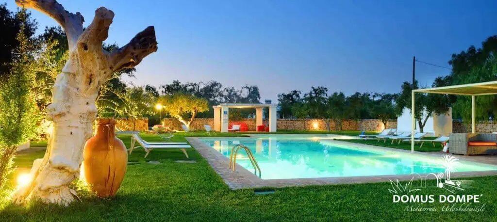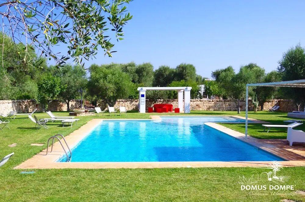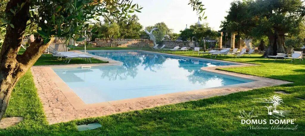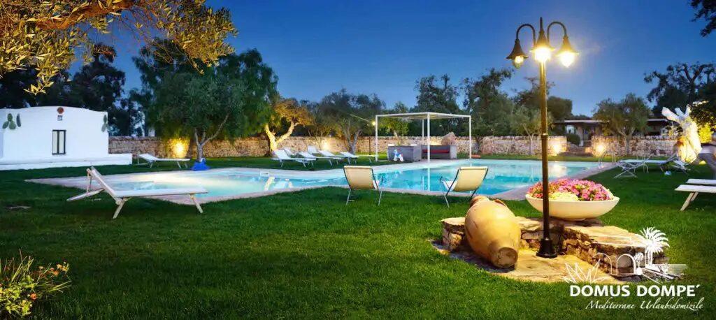 Nur einen Katzensprung von San Vito dei Normanni und der malerischen Weißen Stadt Ostuni entfernt, öffnet der idyllisch gelegene Borgo Paradiso seine Tore. Es ist der ideale Ort, um im Herzen Apuliens einen unvergesslichen Urlaub zu erleben. Eingebettet in die herrliche Landschaft des Alto Salento erwarten den Gast hier zahlreiche Annehmlichkeiten. Ein exklusiver, großzügig angelegter Gemeinschaftspool mit Hydromassage verspricht Relax pur! (Er ist komplett mit Mosaiksteinen ausgekleidet und hat 3 unterschiedliche Höhen). Nach einem erfrischenden Bad im Pool lässt sich dann auf auf den Sonnenliegen der Liegewiese um den Pool herum dann entspannt ein gutes Buch lesen. Und unter den diversen Schatten spendenden Lauben lässt sich dann bestimmt auch noch ein Plätzchen für einen netten Plausch finden.